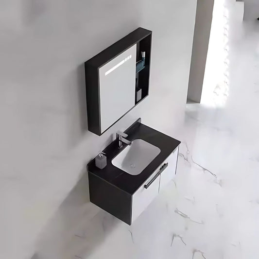 Fürdőszobaszekrény szett LED-es tükörrel és függesztett mosdószekrénnyel, 60x70 cm, fekete-fehér, modern minimalista dizájn