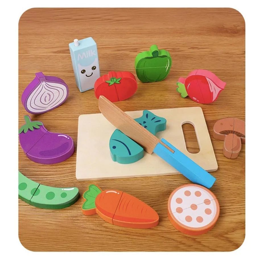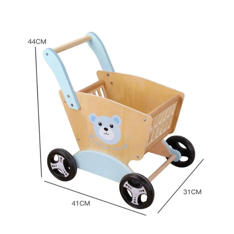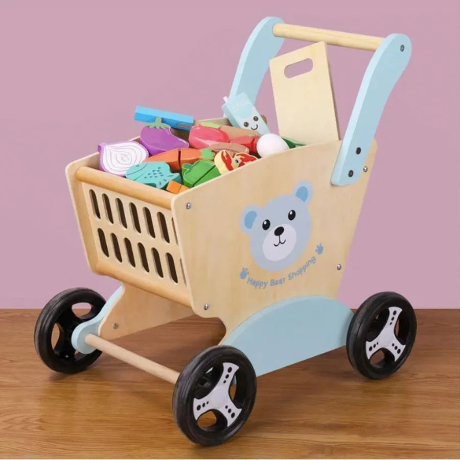 A kocsi különféle ételekkel, krém, kék, 46 darab, fa és műanyag