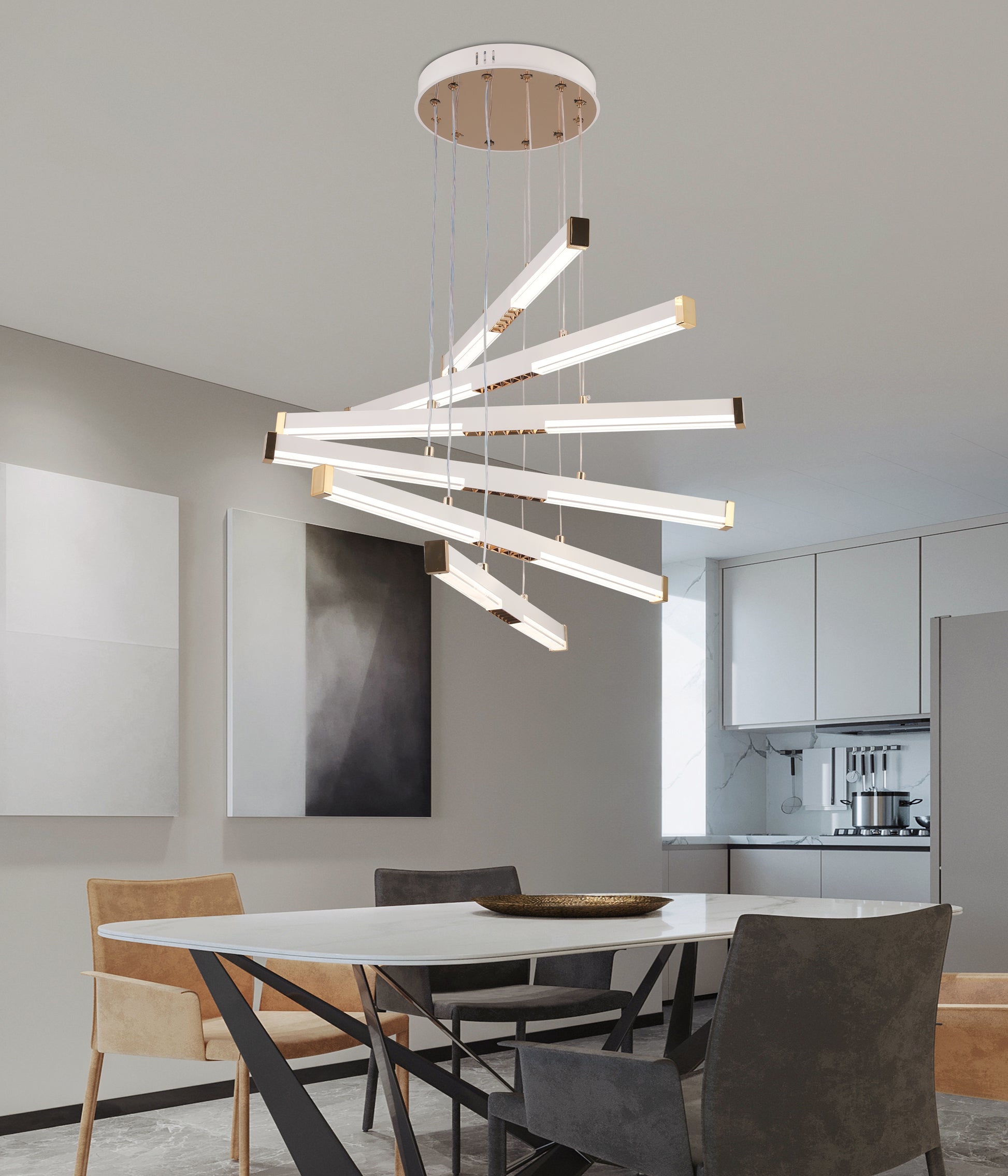Függesztett akril LED csillár LT183/5WH, 69W, fény 3000/4000/6000K, fehér, állítható magasságú