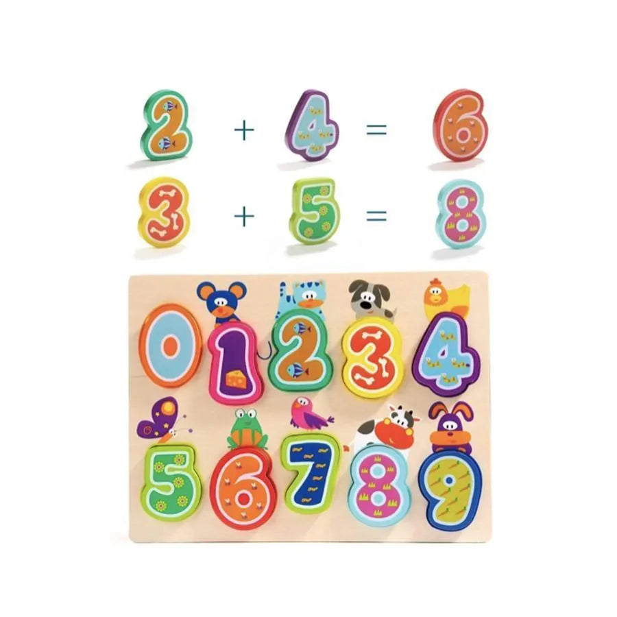 Asztal többszínű állatokkal és számokkal, 11 darab, fa