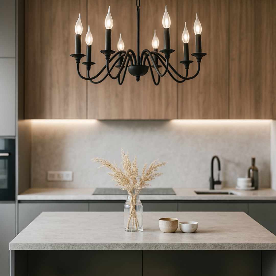 - 🖼️ Alkalmazott csillárok - közvetlenül a mennyezethez rögzítve, ne engedje meg a magassági szabályozást.