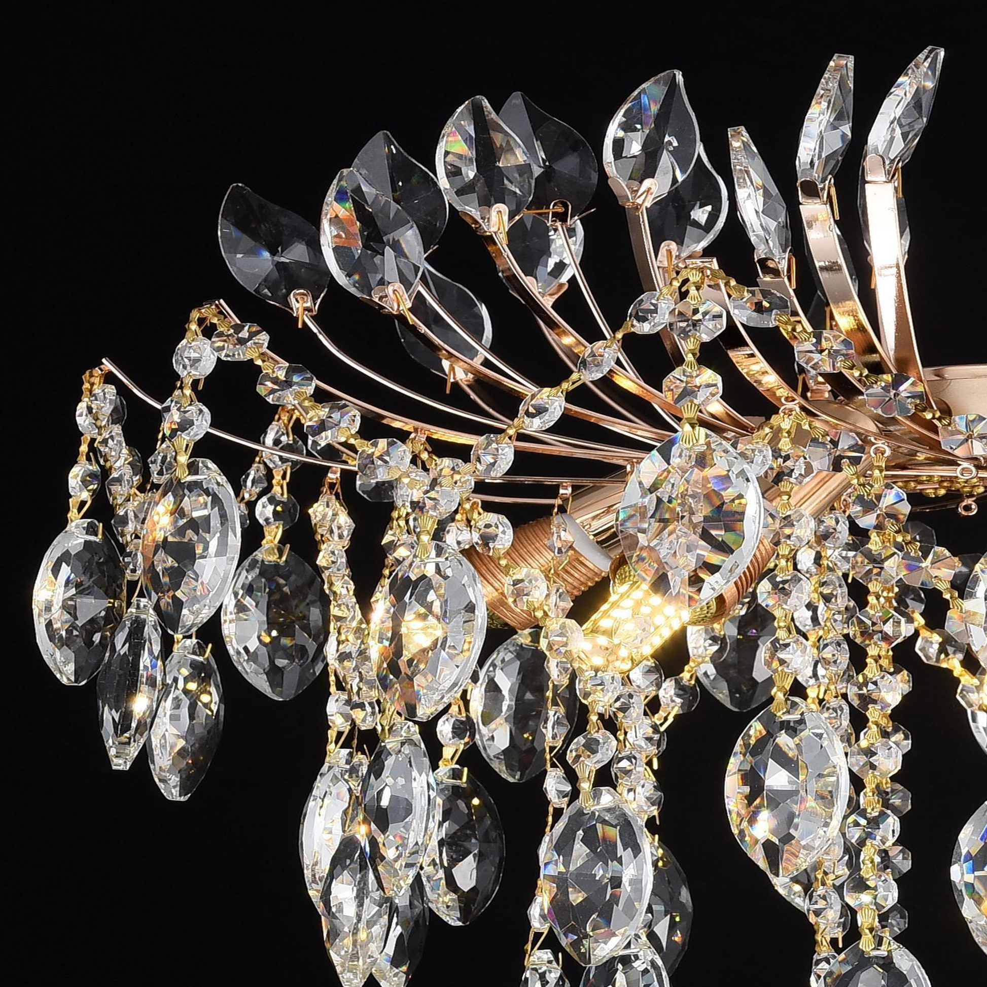 Ez egy csillár, amely ötvözi a kristályok fényerejét az arany eleganciájával, és bármilyen helyiségben lenyűgöző fókuszpontot teremt.
