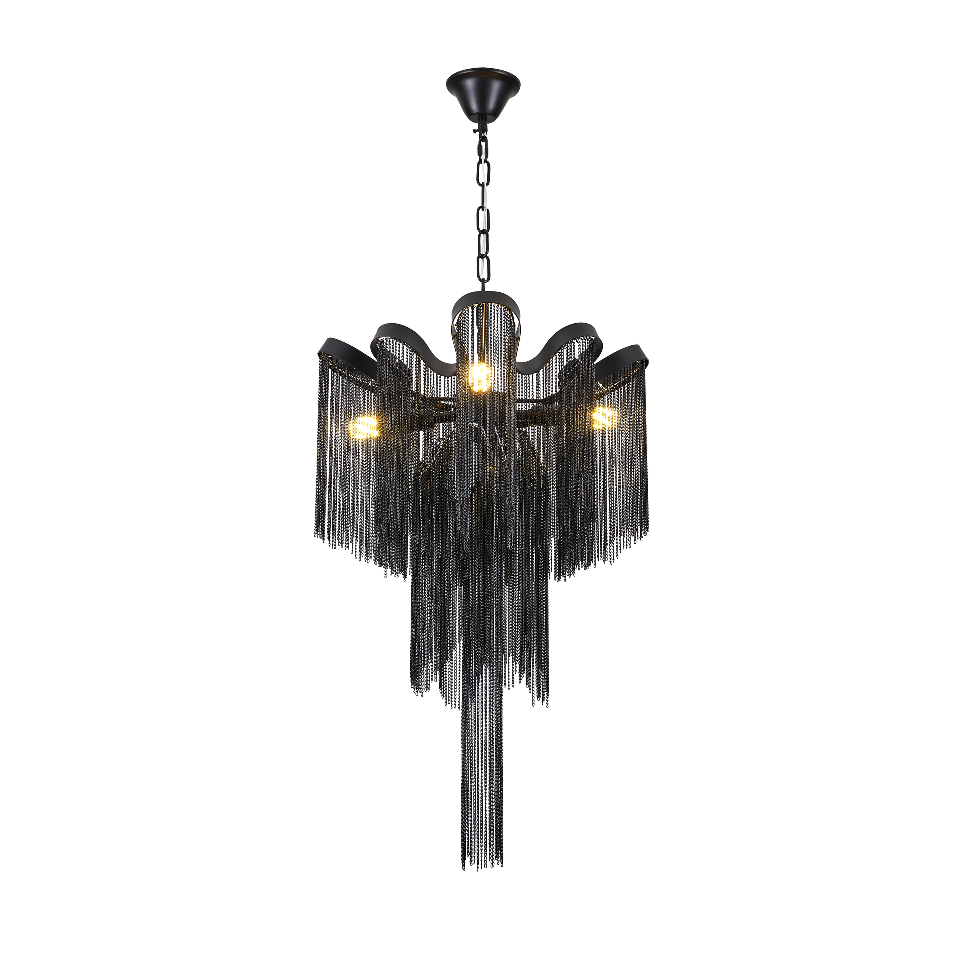 Vas és alumínium csillár modern dizájnnal, fekete színben.