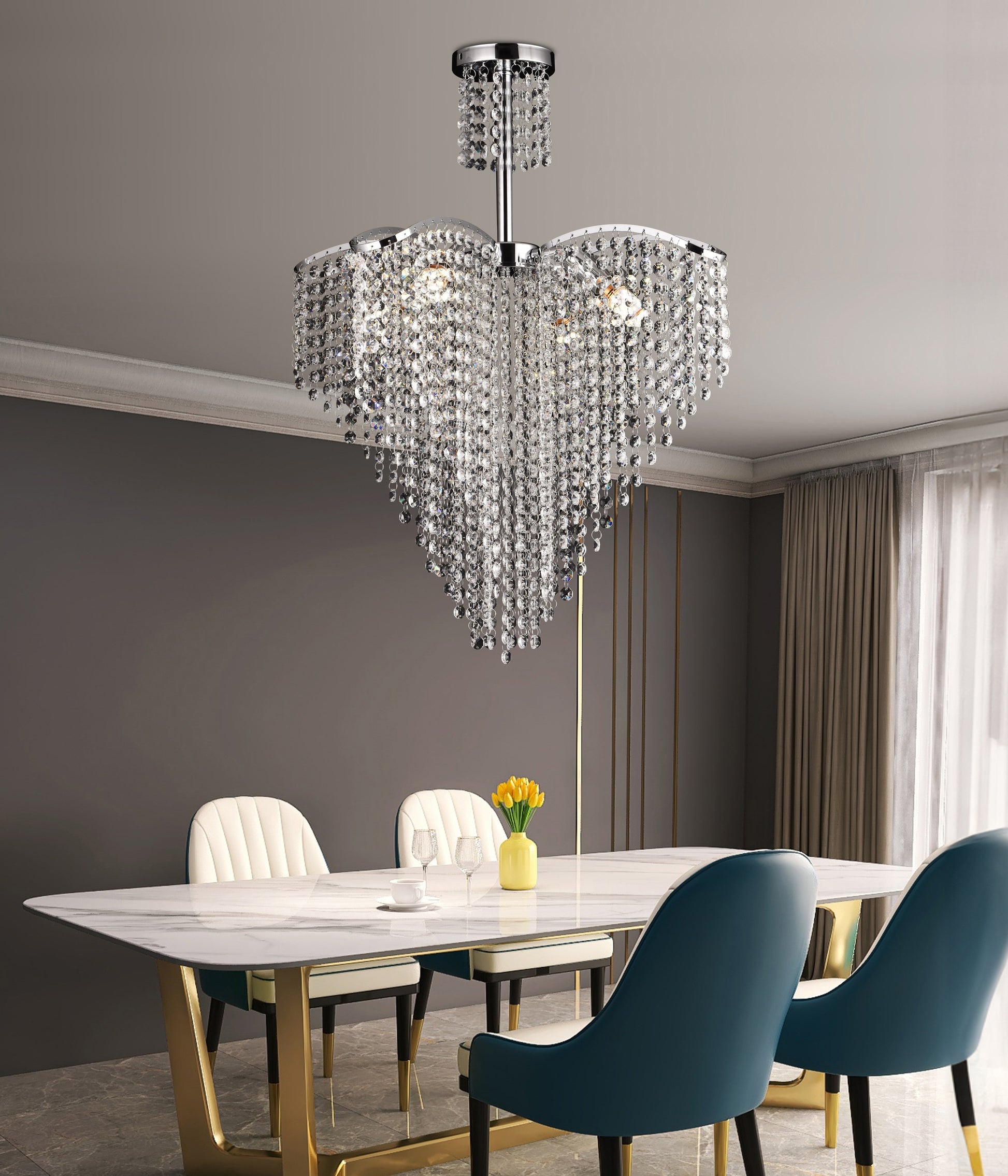 Ez a különleges csilláron keresztül eleganciát ad a szobájának. A fényforrásokat díszes szálak veszik körül, lenyűgöző számú kristályral. Miután a csillár megvilágult, a gondosan elhelyezett kristályokon keresztüli fényvisszaverődés egyedi, esztétikai rendkívüli forrást hoz létre.