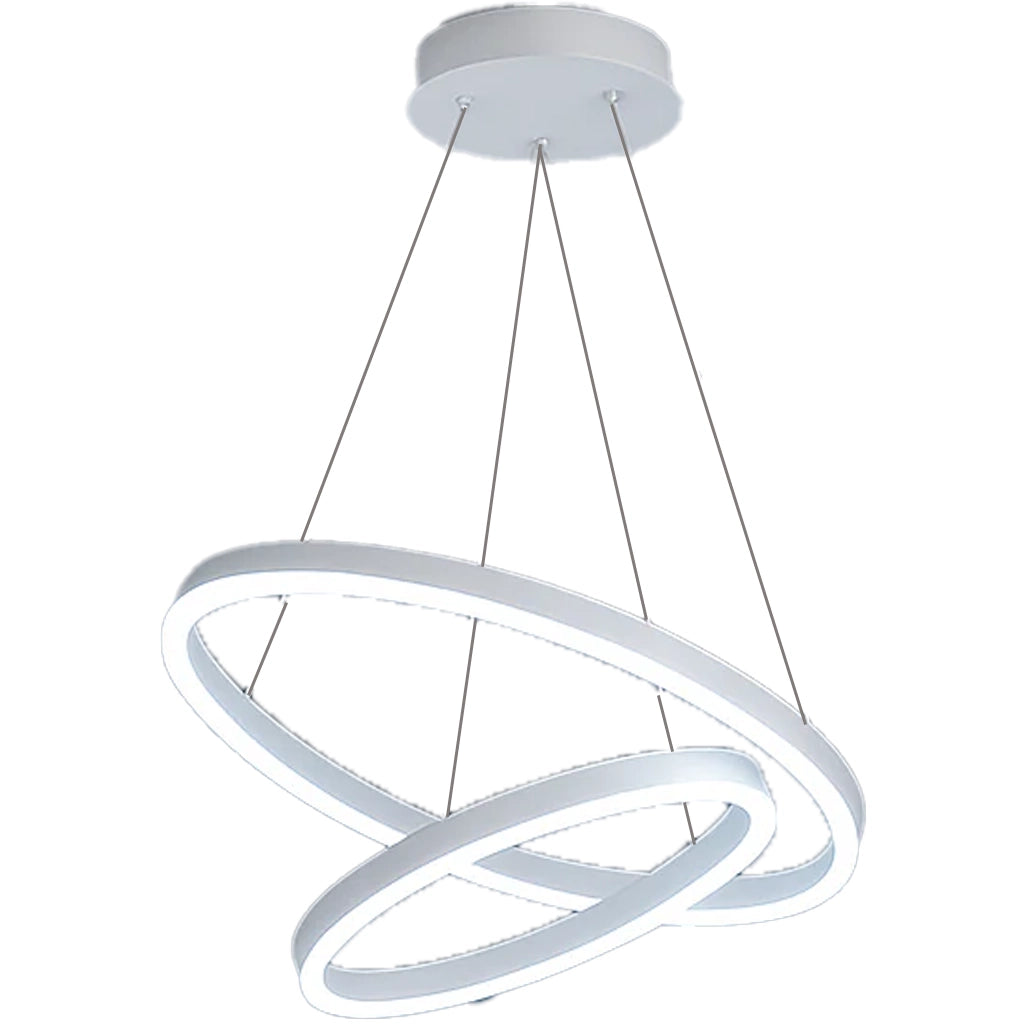 Függesztett LED-es csillár távirányítóval CASIANA 41W, 2 kör, hideg/meleg/semleges fény, szabályozható, fehér, állítható magasságú
