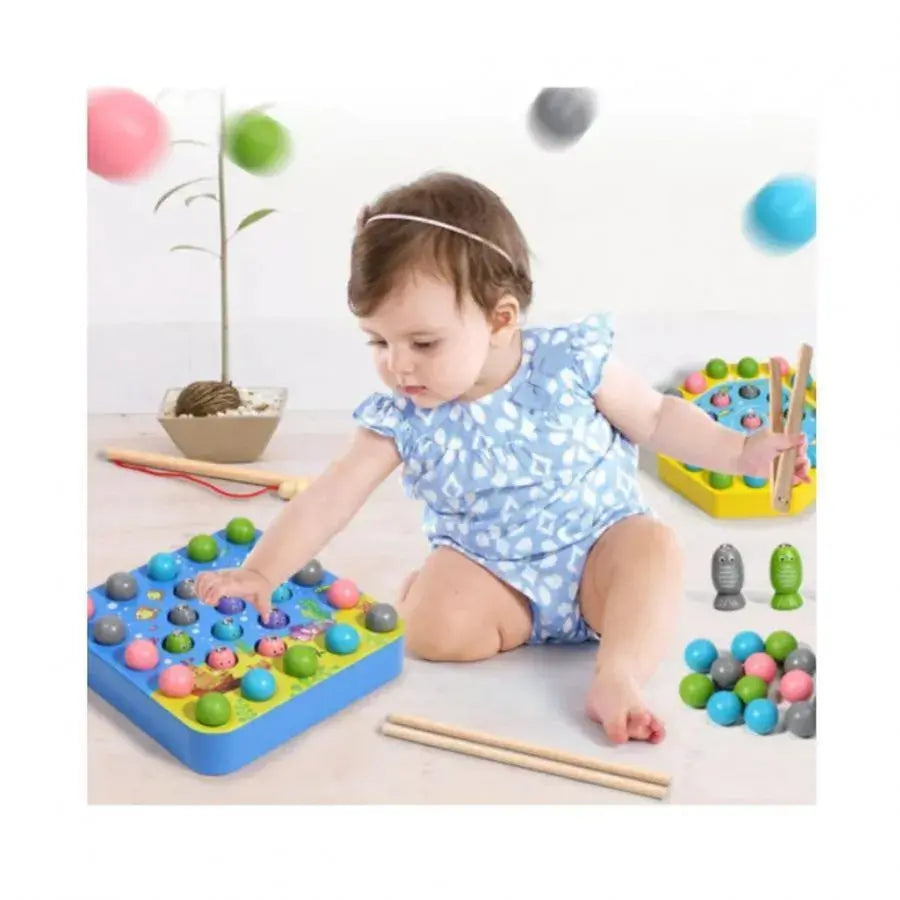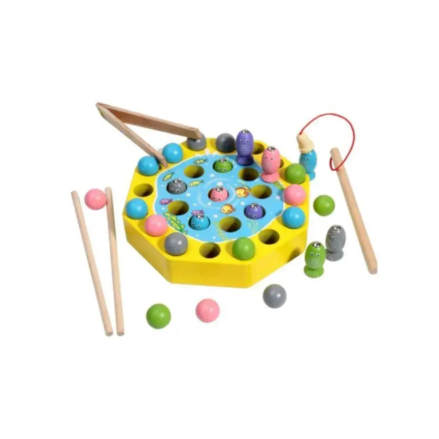 Interaktív hatszögletű játék típusú halászhalak, többszínű, fa