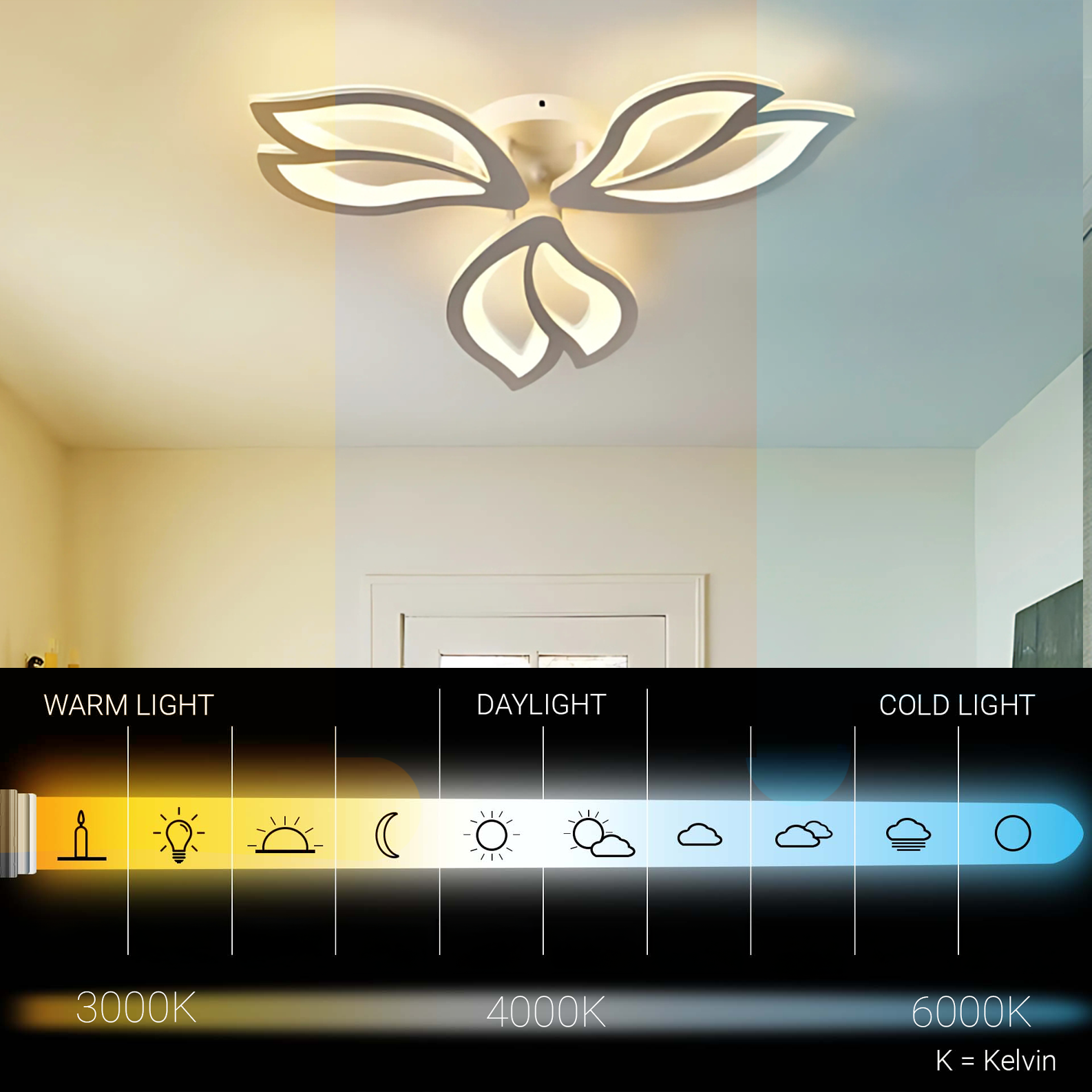 ⚠️ ÓVATOS!: Egy bizonyos színhőmérséklet beállítását csak akkor lehet megtenni, ha a csillárokat leállítják és a távirányítóból indítják. Mindkettő a távvezérlővel rendelkező csillároknál, a kapcsoló egymást követő megnyomása megváltoztatja a fénytípust.