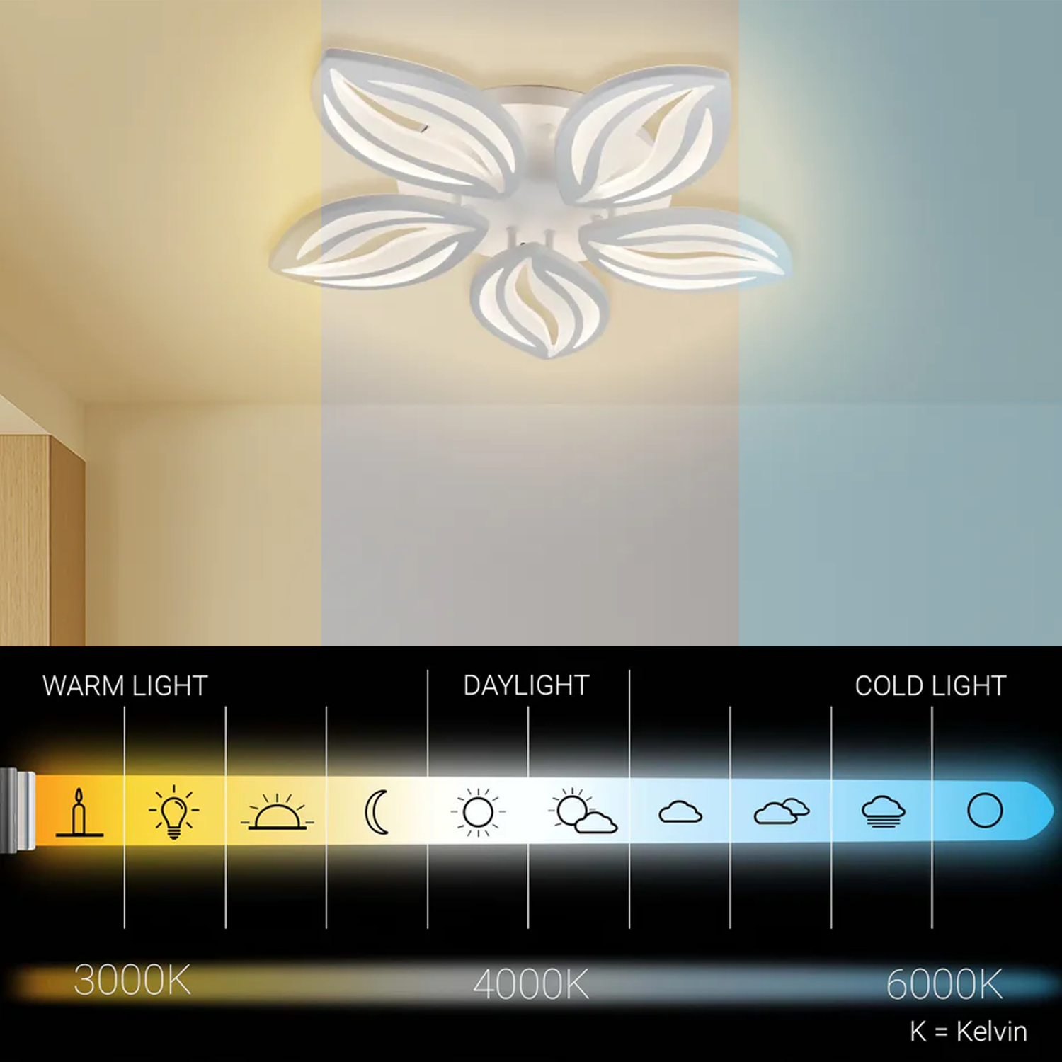LED -csillár orchidea 65W távirányítóval, 5 szirom, hideg/forró/semleges fény, gerenda, fehér