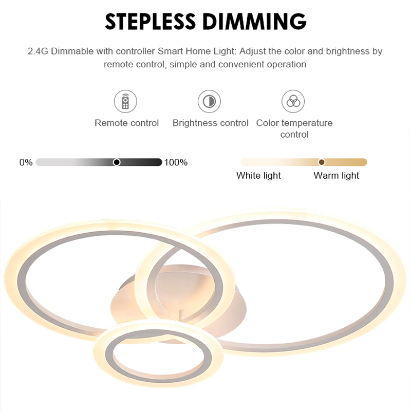 LED csillár távirányítóval BETTY 40W, 3 kör, hideg/meleg/semleges fény, szabályozható, fehér, fém és akril