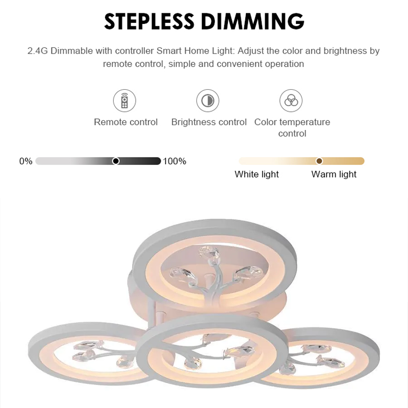 LED -csillár távirányítóval és Daisy 49W Crystal, 4 elem, hideg/forró/semleges fény, instabil, fehér