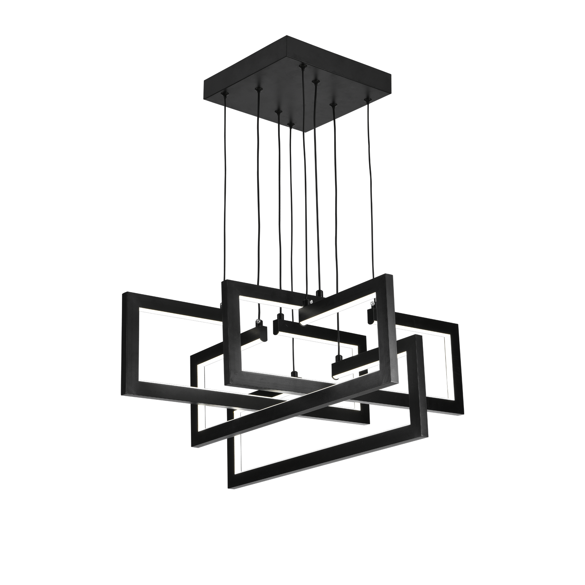 LED csillár távirányítóval, felfüggesztett 98W, 4 elem, hideg/meleg/semleges fény, szabályozható, állítható magasságú, fekete