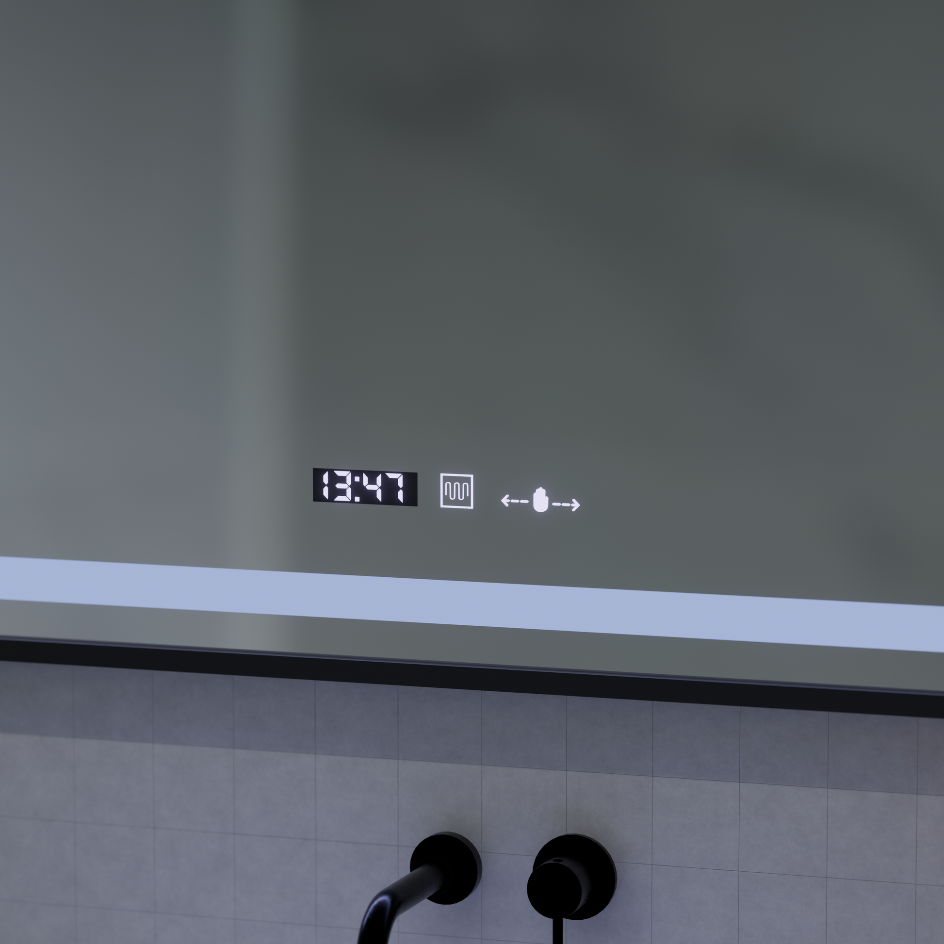 LED -tükör mozgásgátló érzékelő domingo leolvasztó leolvasztási funkcióval 120x65 cm hideg/meleg/meleg fény, fekete szálcsiszolt keret, Marcello Funghi kollekció