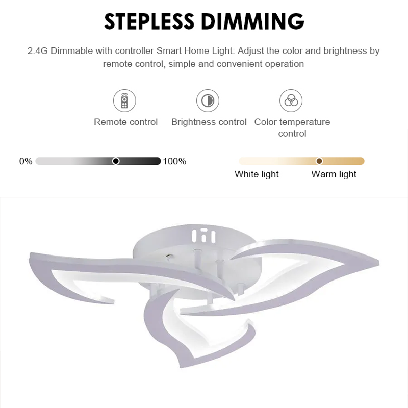 LED -csillár Lotus 34W távirányítóval, 3 szirm, hideg/forró/semleges fény, instabil, fehér