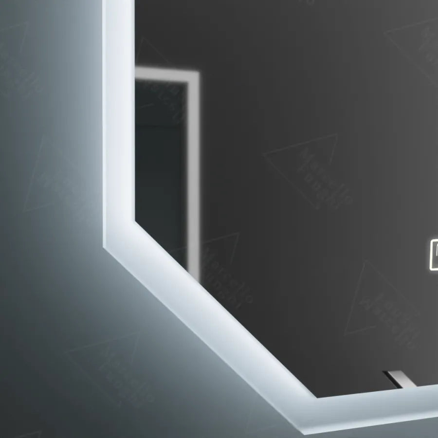 Polygon LED -tükör, 60x80cm, hexalce érzékelő mozgásglow marcello, diszfigurációs rendszer, óra és hőmérő, daimable
