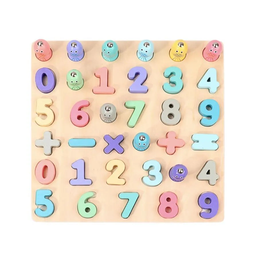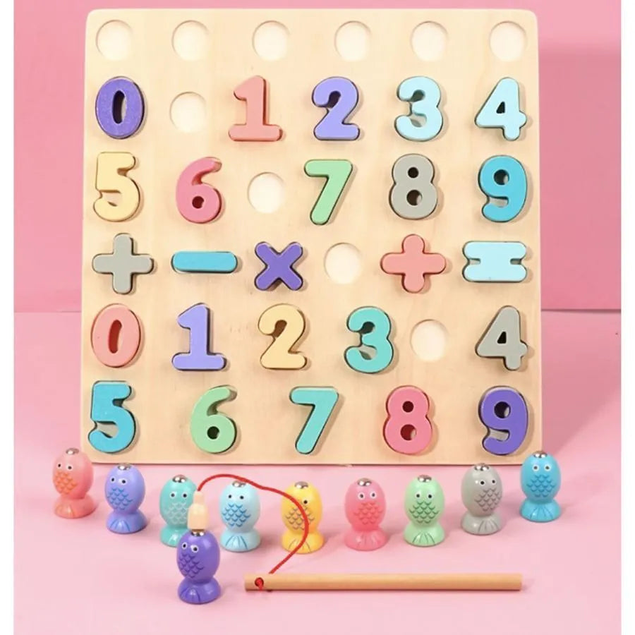 Oktatási tábla típusú játék többszínű figurákkal és halakkal, 36 darab, fa