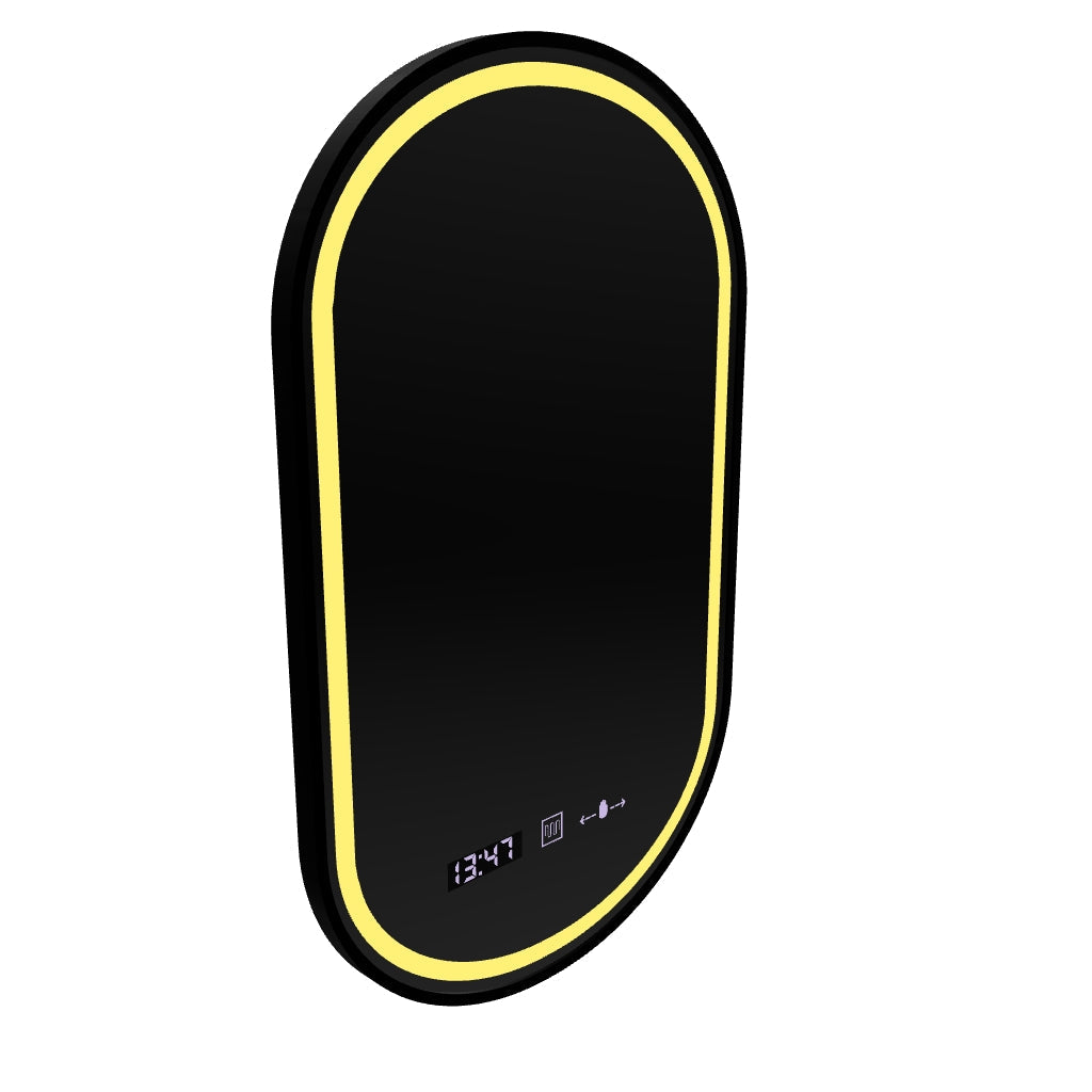 Ovális LED-es tükör, 50x90cm, Alessia MotionGlow Marcello, Páramentesítő rendszer, Óra és hőmérő, Szabályozható