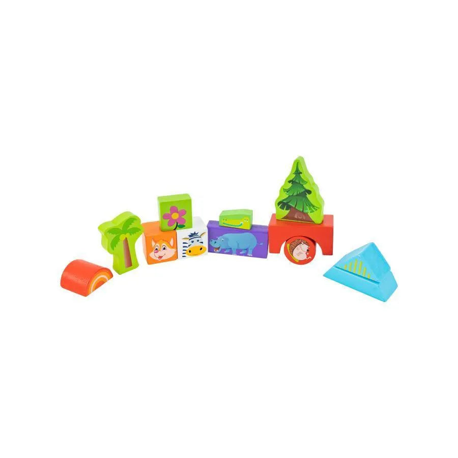 Puzzle játékkockák erdőállatokkal építéshez, 100 darab, fa