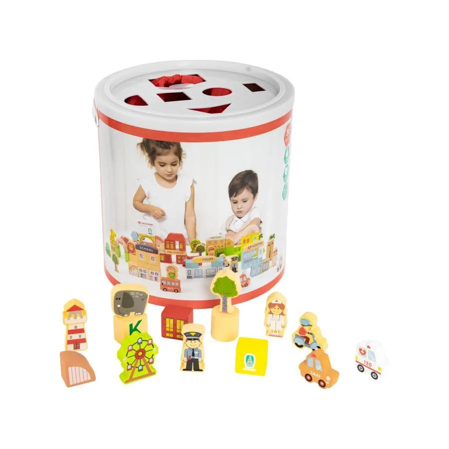 Puzzle típusú játék, hogy felépítse a napkelte városát, sokszínű, fa