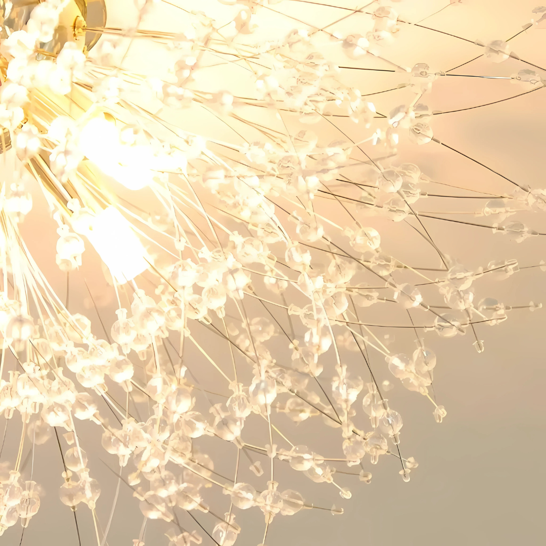 - Befejezés: szín fényes arany A fémszerkezet fokozza a luxus és a hő érzését. Az arany kivitel meleg és gazdag módon tükrözi a fényt, és még jobban értékeli a kristályok fényerejét.