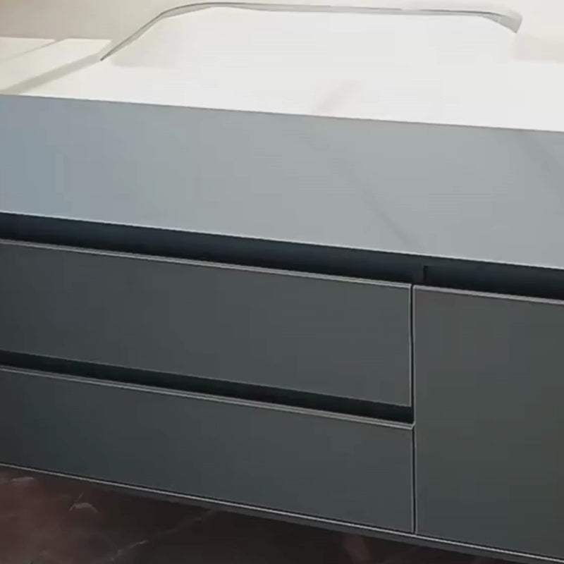 Alsó test (bútor mosogatóval): Az alapbútorok is felfüggesztettek, így a padló könnyen tisztítható. Fiókokkal rendelkezik a tároláshoz, és közvetlenül a pultba integrálja a mosogatót. Az öntött medencével ellátott kialakítás összefüggő felületet hoz létre, illesztések nélkül, könnyen karbantartható és modern megjelenésű.