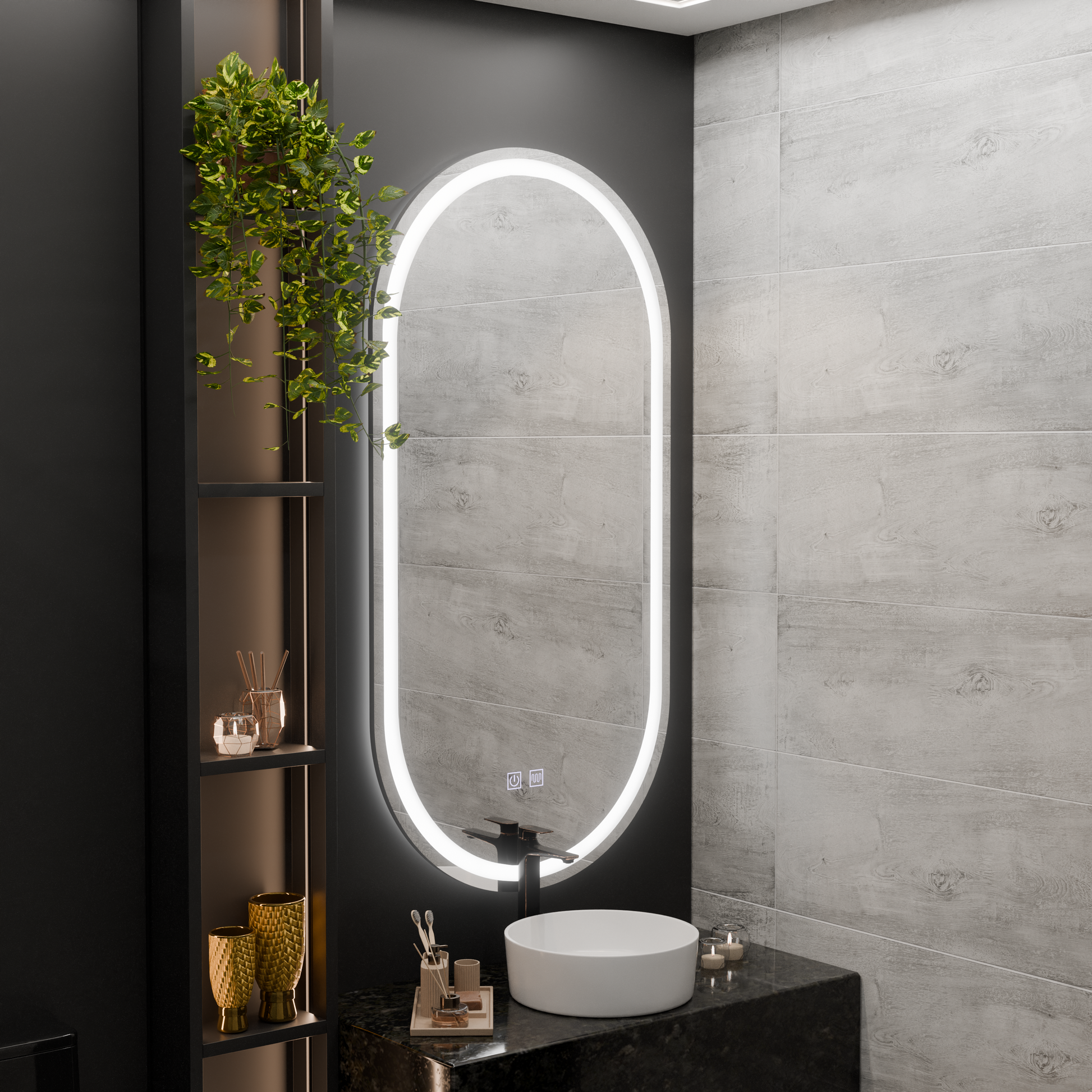 Ovális LED -tükör, 50x100cm, Velara Touch, Szabadságrendszer, Dimable