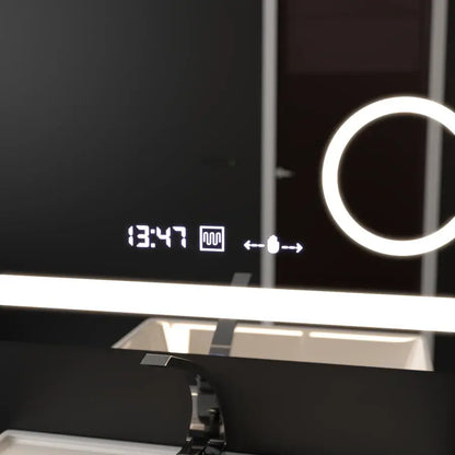 Téglalap alakú LED -tükör, 60x60 cm, Souverain MotionGlow Marcello, Debrunion rendszer, óra és hőmérő, kozmetikai nagyító